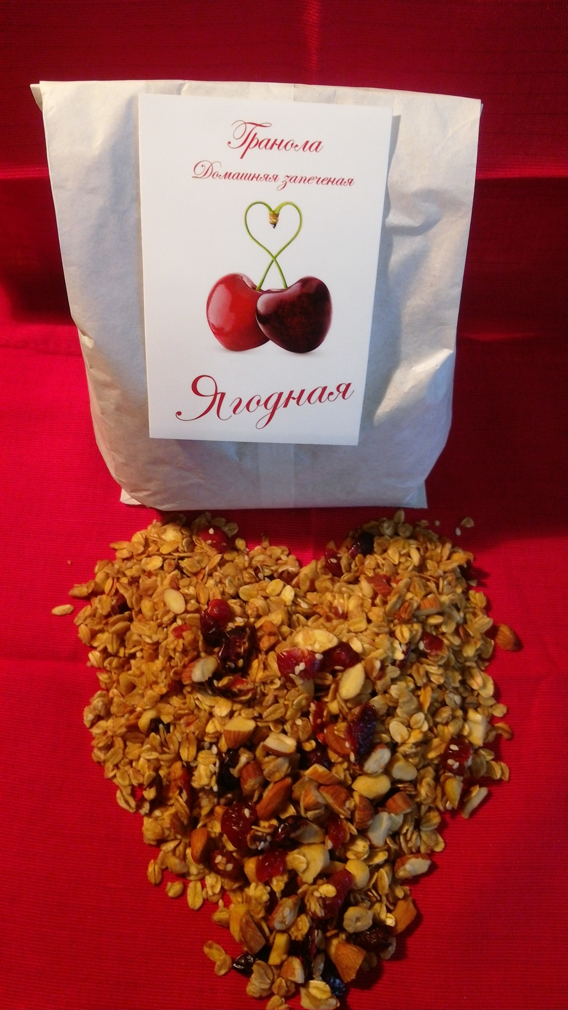 Мы изготавливаем свою гранолу из отборных орехов и сухофруктов. Не используем при приготовлении сахар, муку, масло, консерванты и красители. Только натуральные ингредиенты!